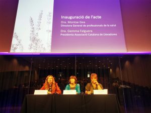 Peu de foto superior (d’esquerra a dreta) Aida Gabriel (delegada de l’ACL a Lleida), Gemma Falguera (presidenta ACL), Encarna López (llevadora i ponent de la jornada), Montserrat Gea (directora general de Professionals de la Salut) i Mercè Porté (presidenta del COILL) © Missatges