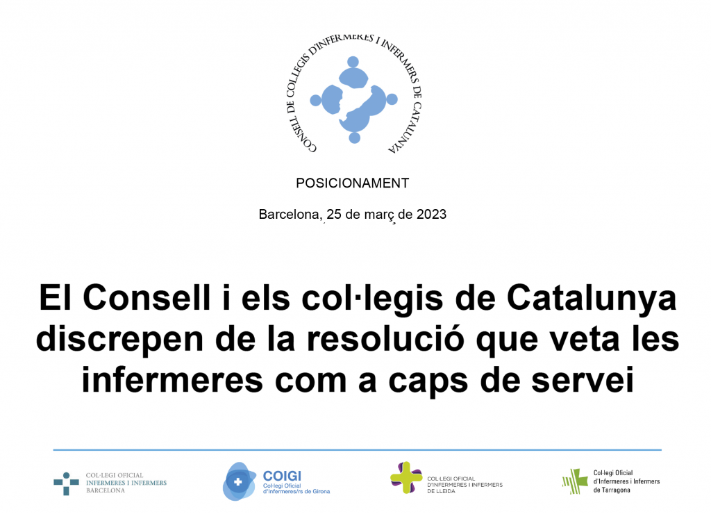 POSICIONAMENT I El COILL, el Consell i la resta de col·legis de Catalunya discrepen de la resolució que veta les infermeres com a caps de servei