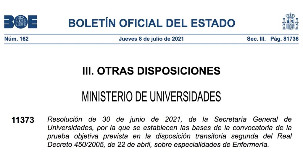 Actualització de les bases de la ‘Prova objectiva per a l’accés excepcional al títol d’Infermera Especialista’