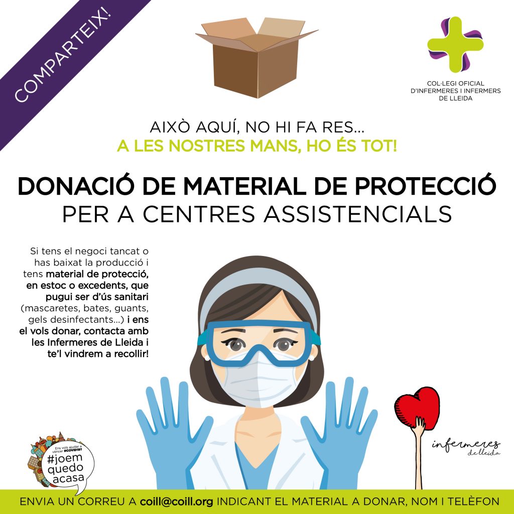 Les Infermeres de Lleida demanen la donació d’estocs de material de protecció per als centres assistencials