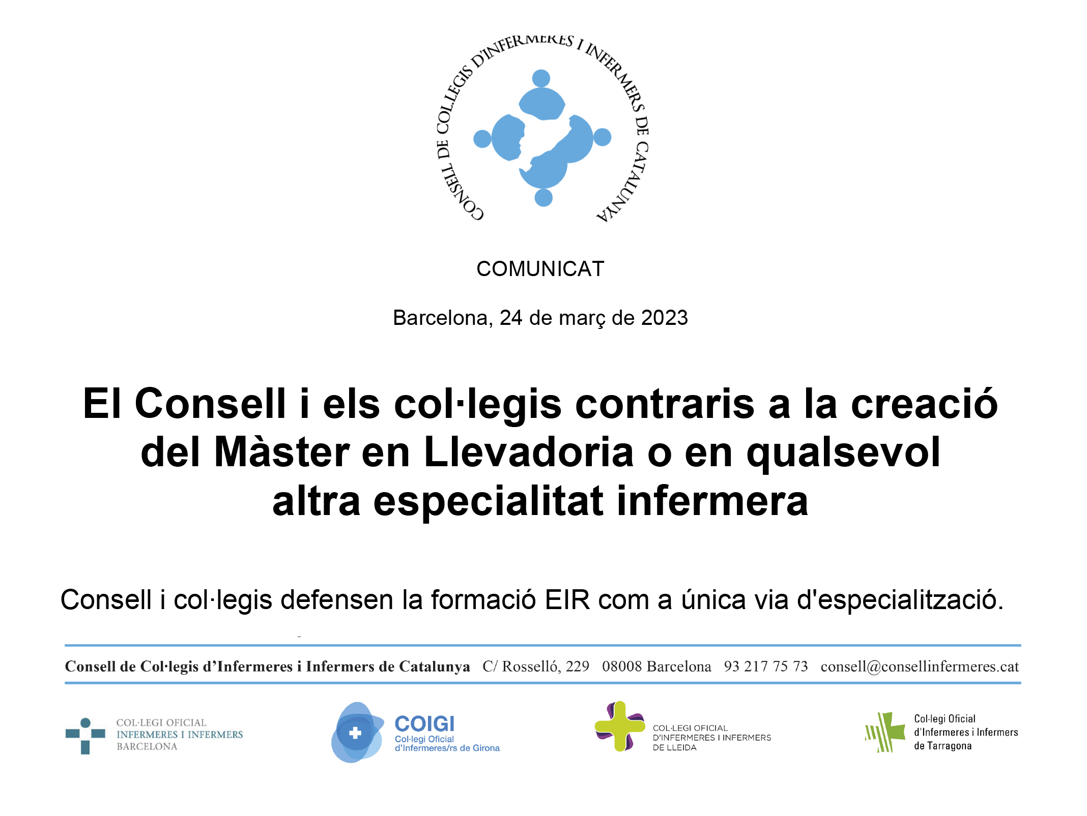 COMUNICAT I El Col·legi d’Infermeres de Lleida contrari a la creació del Màster en Llevadoria o en qualsevol altra especialitat infermera
