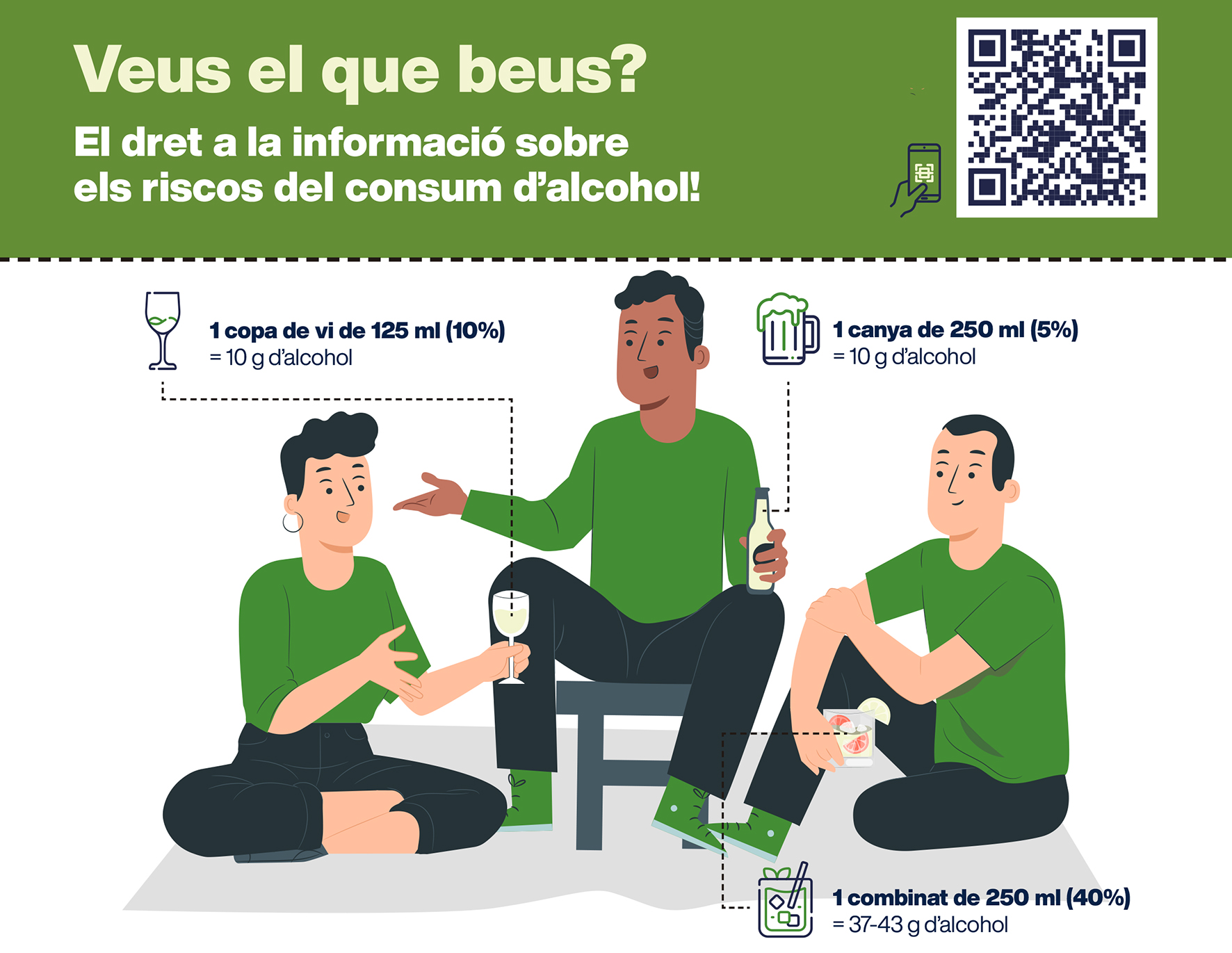 A més, fins al 19 de novembre, es promou la 10a Setmana de sensibilització sobre els riscos del consum d’alcohol amb el lema ‘Veus el que beus? El dret a la informació sobre els riscos del consum d’alcohol’.