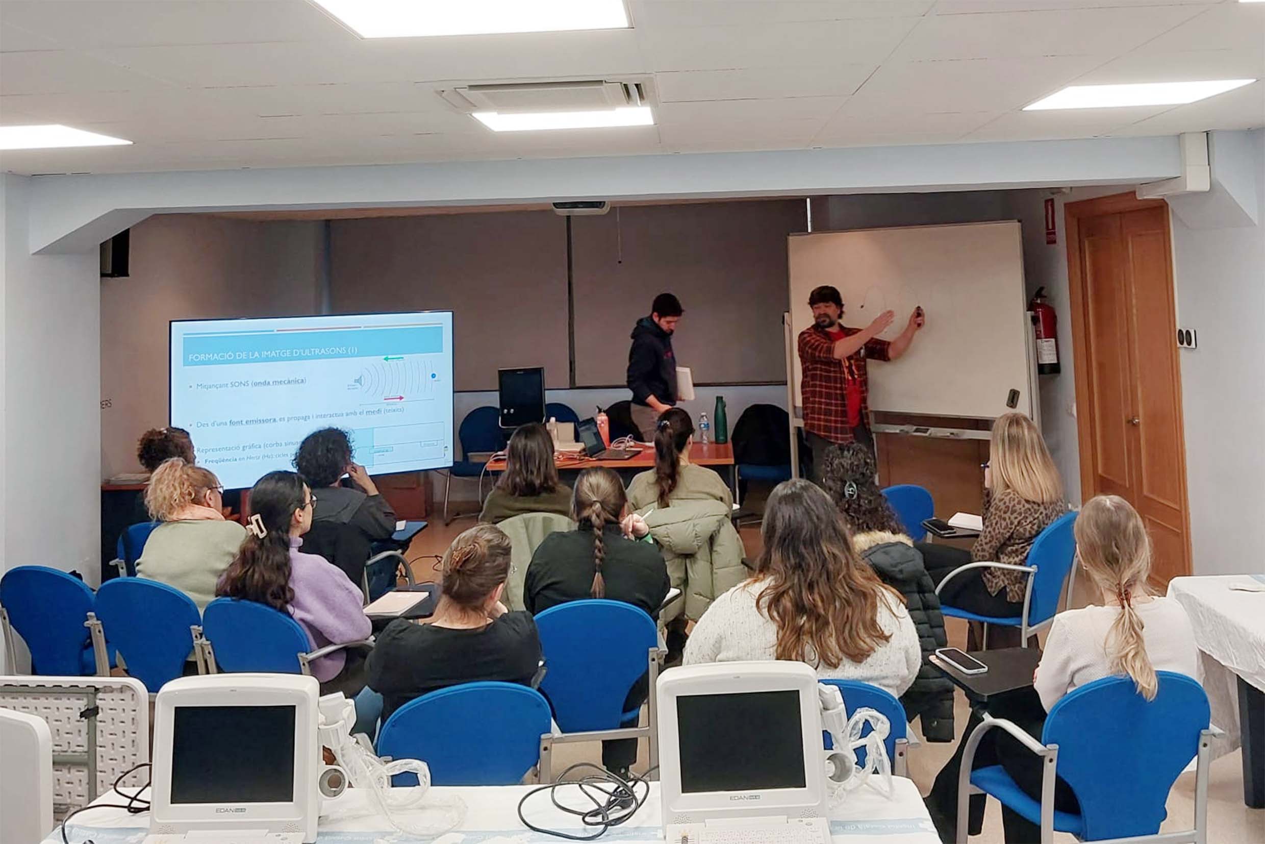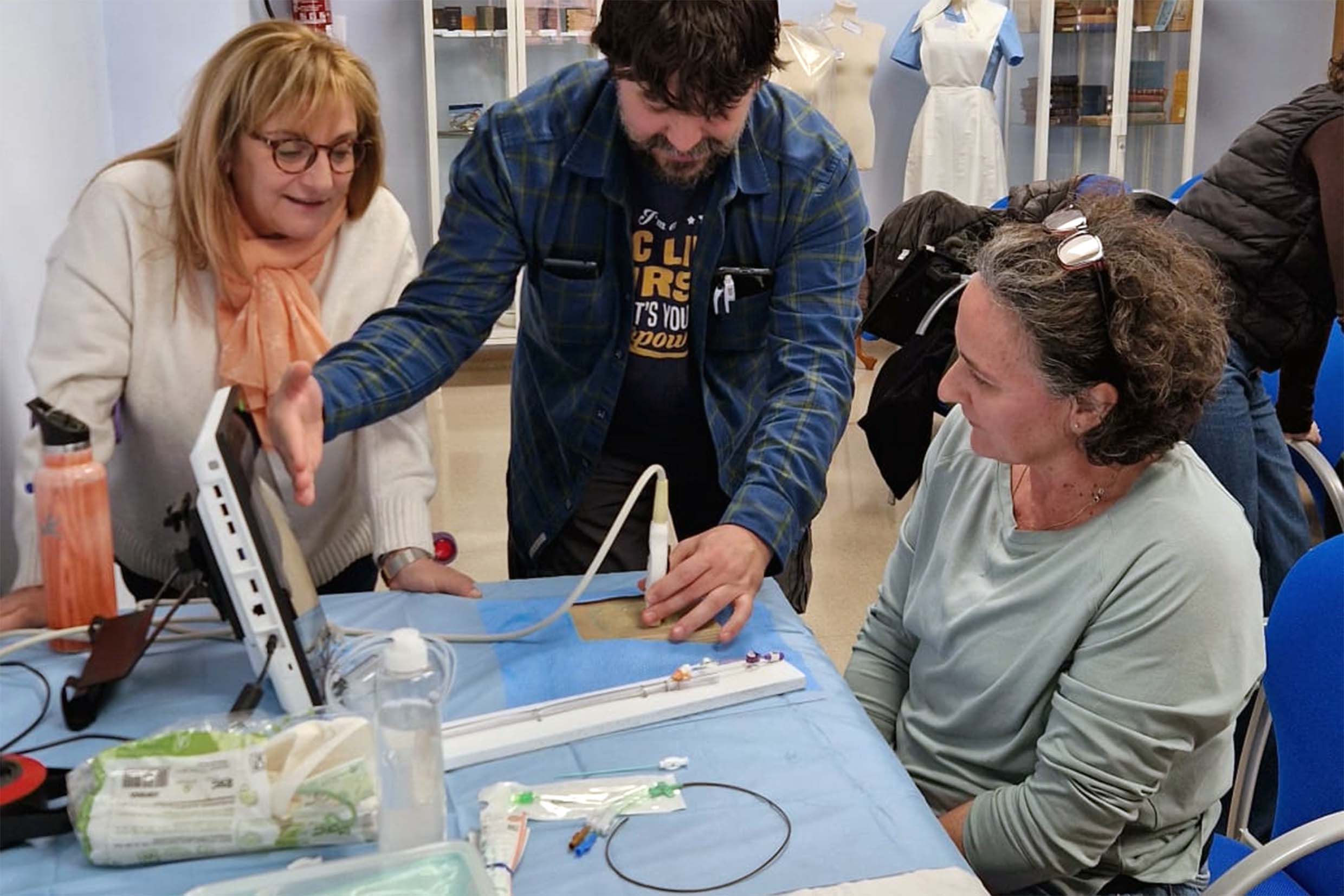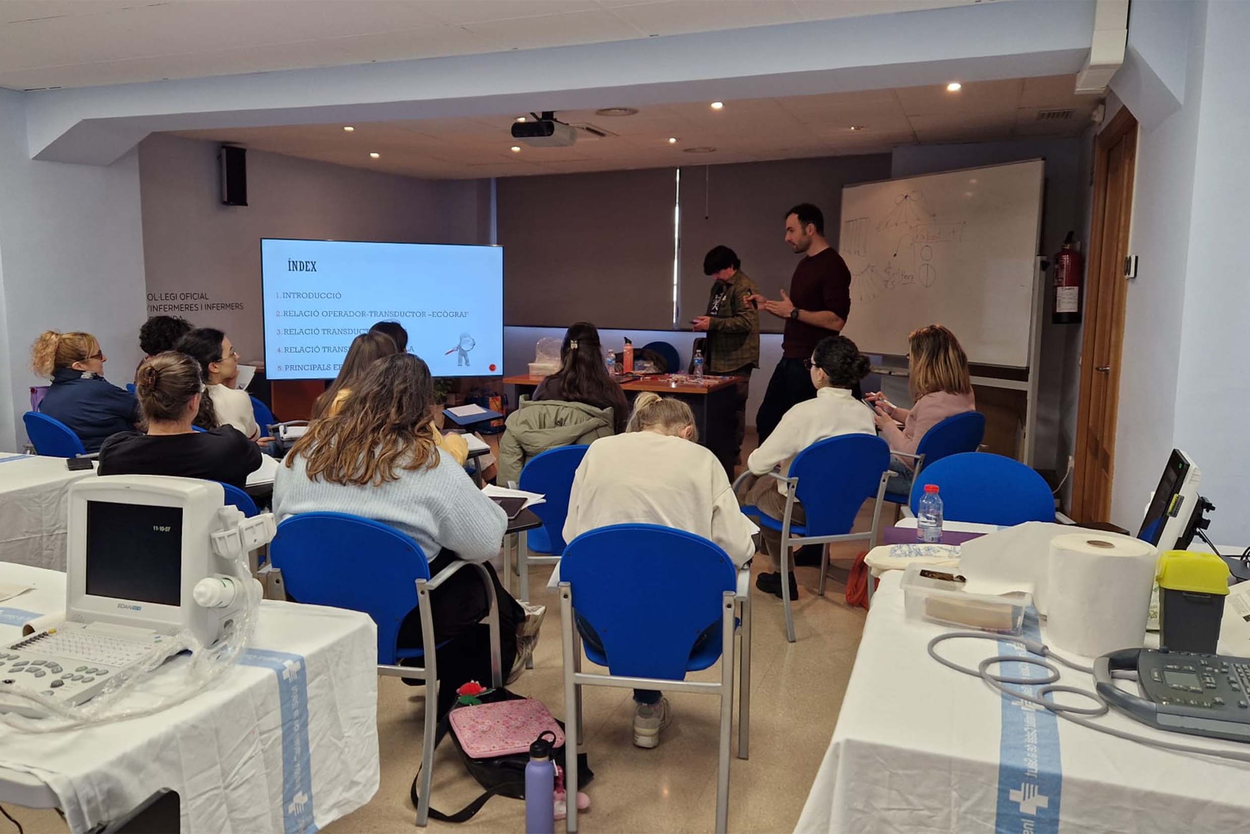 Rubinat, Bergua i Padilla, que són graduats en Infermeria, tècnics superiors en Imatge per al diagnòstic i experts universitaris en Teràpia intravenosa i accessos vasculars; van explicar els principis bàsics de l’ecografia, amb la identificació d’estructures i l’ús de l’aparell; i la punció, centrant-se en la tècnica Seldinger i les seves variants. D’altra banda, van evidenciar els diferents accessos vasculars com els catèters perifèrics curts, els catèters de línia mitjana (catèters perifèrics llargs i Midlines) i els accessos centrals d’inserció perifèrica (PICC), entre d’altres. Les infermeres es van formar a més sobre el manteniment, cures i les principals complicacions d’aquests elements. Finalment, el curs va reforçar la importància de la infermeria pel que fa als accessos vasculars i s’han fet pràctiques amb l’ecògraf, mitjançant models de simulació d’accés vascular.