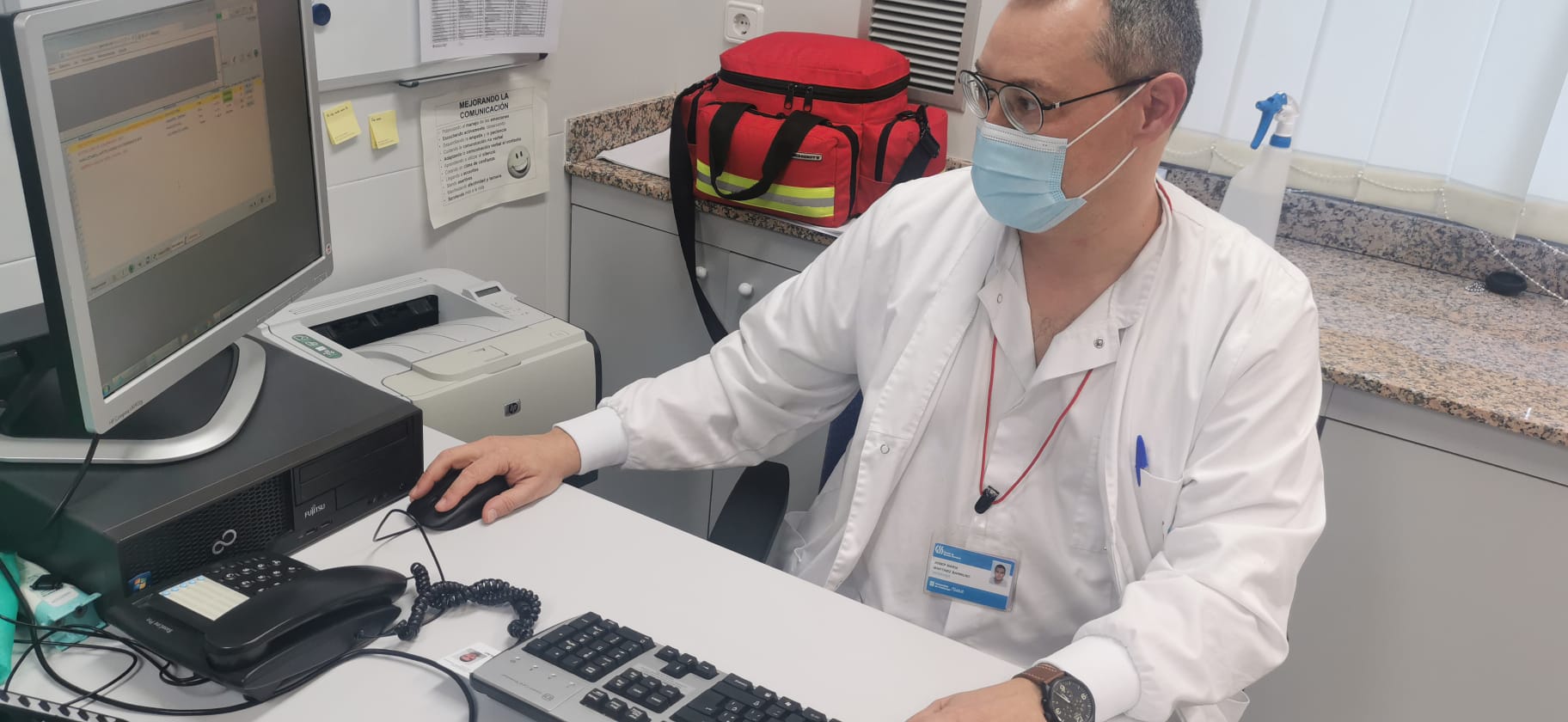 Foto superior: Josep Maria Martínez, infermer del de Consultori d’Alpicat (Lleida Rural Nord), participa en la fase de proves del desplegament de la Prescripció Infermera amb recepta electrònica.
