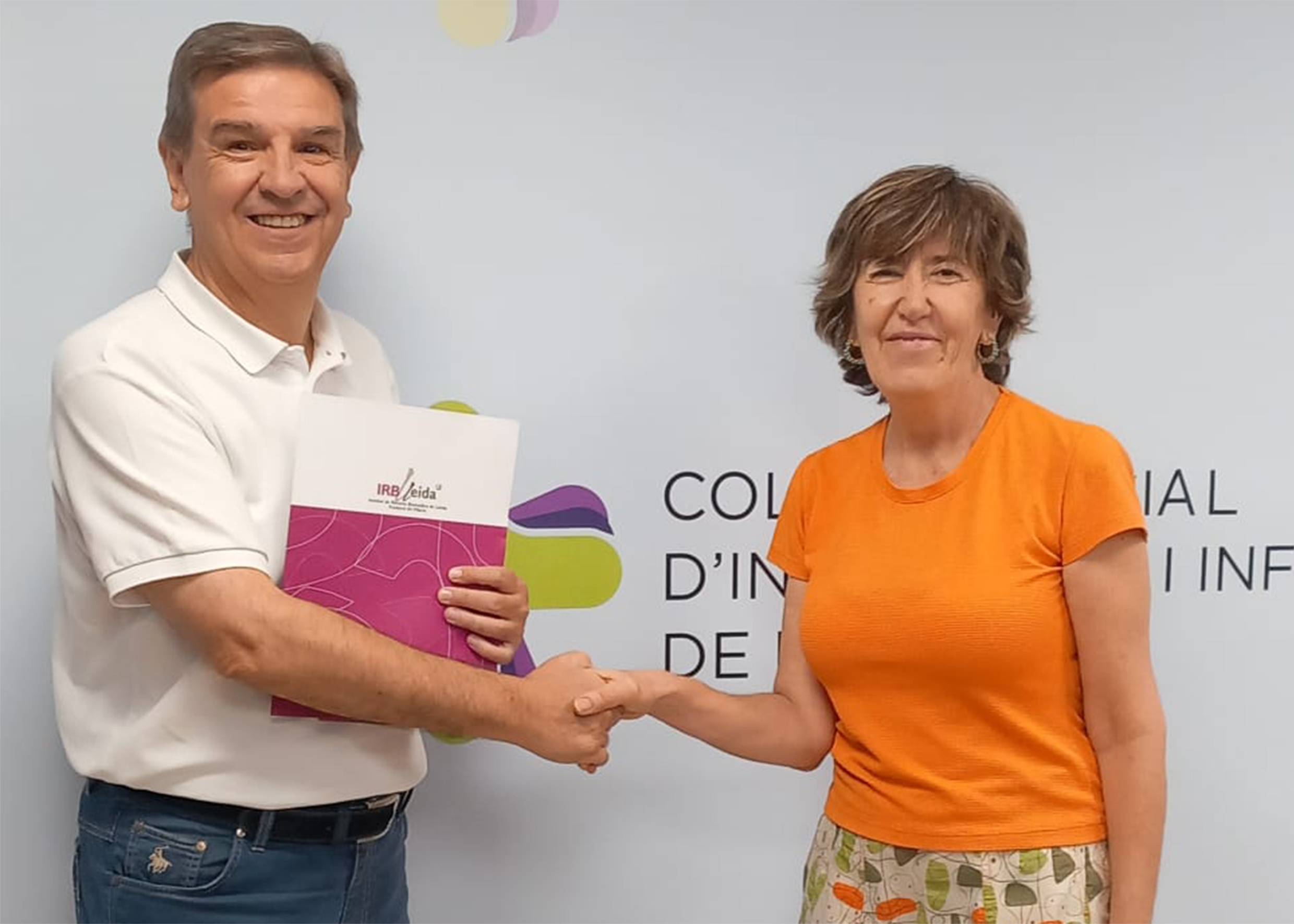 Fotografia Josep Maria Bosch, responsable de Promoció de l’IRBLleida, i Merce Porté, presidenta del COILL, han signat l’acord. ©IRBLleida