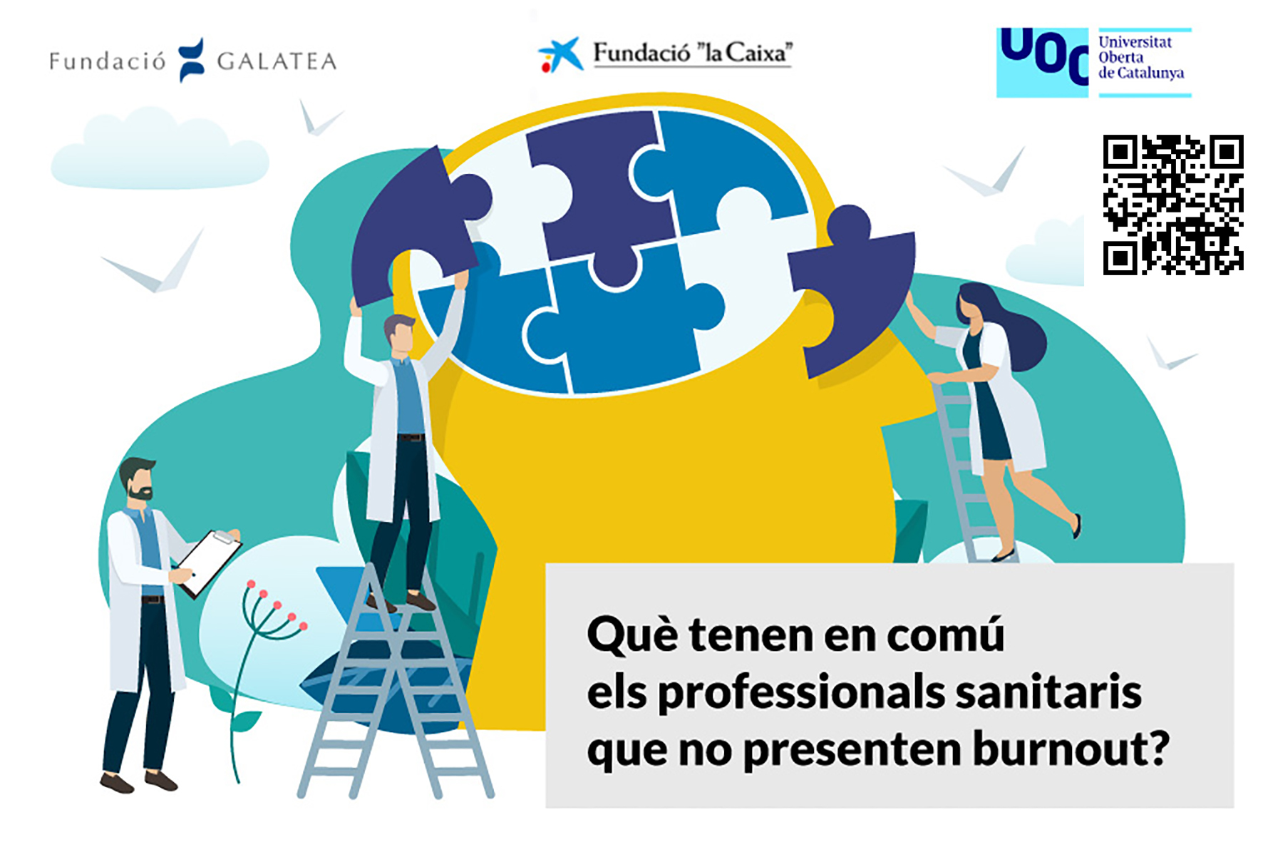L’enquesta és la segona fase (quantitativa) d’un projecte pioner per detectar les característiques comunes dels professionals de la salut que presenten baixos nivells de la denominada síndrome del treballador cremat o (burnout) anomenat “Caracterització dels professionals sanitaris que presenten baixos nivells de burnout professional”, promogut per la Fundació Galatea i la Universitat Oberta de Catalunya (UOC), guanyador de la Convocatòria Connecta 2023 de l’Observatori Social de la Fundació ”la Caixa”.
