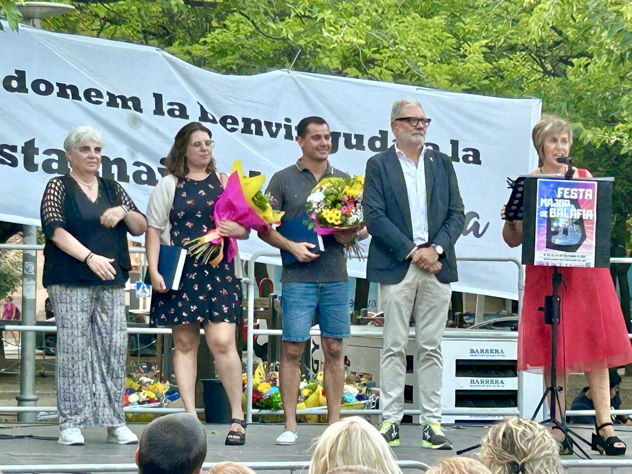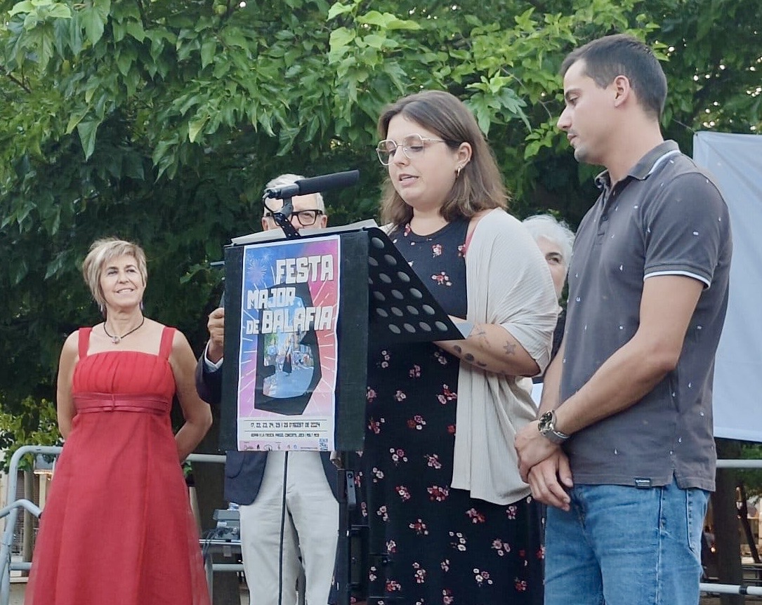 Jacob Mesalles i Janina Ballesté han actuat com a pregoners en representació de tot el personal sanitari, administratiu i de serveis dels CAP Balàfia-Pardinyes-Secà i Onze de Setembre que, el 2022, van estar guardonats amb el 1r Premi Balàfia a instàncies de la Comissió dels 50 anys de Moviment Veïnal de l’Associació Veïnal de Balàfia.