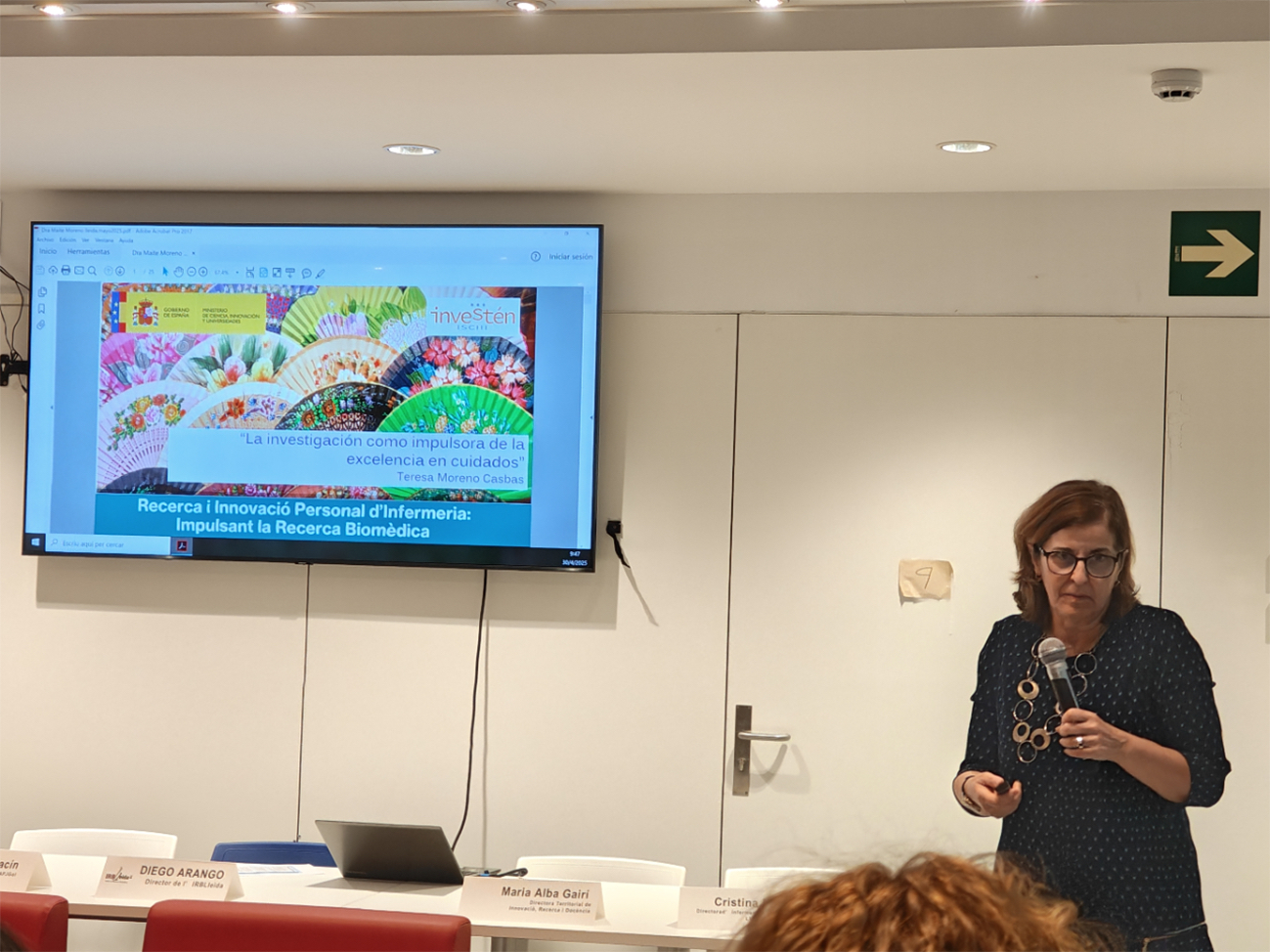 Tot seguit, s’han tractat el “Present i futur de la recerca biomèdica i el paper del personal de cures de la salut”; amb les intervencions de la directora de la “Unidad de Investigación en Cuidados y Servicios de Salud. Investén-isciii del Instituto de Salud Carlos III”, Mayte Moreno; i la responsable del Grup de Recerca de Cures en Salut (GReCS) de l’IRBLleida, Montserrat Gea. La directora d’Investén-isciii ha centrat la seva exposició a “La investigación como impulsor de la excelencia en cuidados”; i la investigadora principal del GReCS ho farà a “La importancia de la colaboración nacional e internacional para la consolidación de la investigación en cuidados. Experiencia desde el Grupo de Investigación en Cuidados en Salud del IRBLleida”.