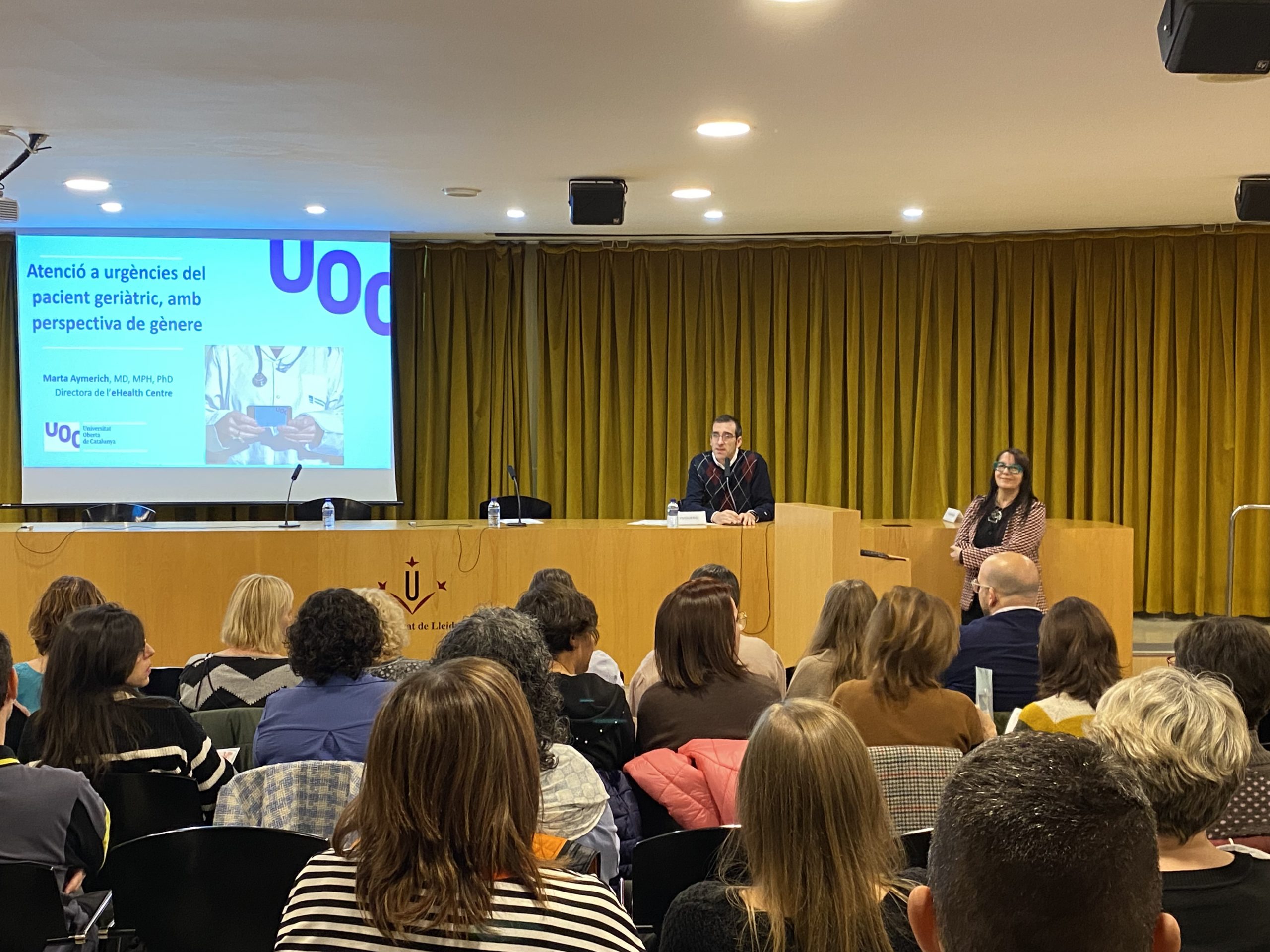 La conferència inaugural, a càrrec de Marta Aymerich, vicerectora de la Universitat Oberta de Catalunya (UOC), ha reflexionat sobre els models actuals i futurs d’atenció urgent al pacient geriàtric, incorporant una perspectiva de gènere. Segons ha explicat Aymerich, entre el 20 i el 30% de les visites a Urgències són de pacients geriàtrics. “La seva pluripatologia, polifarmàcia i fragilitat xoquen amb un sistema dissenyat per a la medicina aguda, generant taxes altes d’ingrés i reingrés”, ha afirmat.