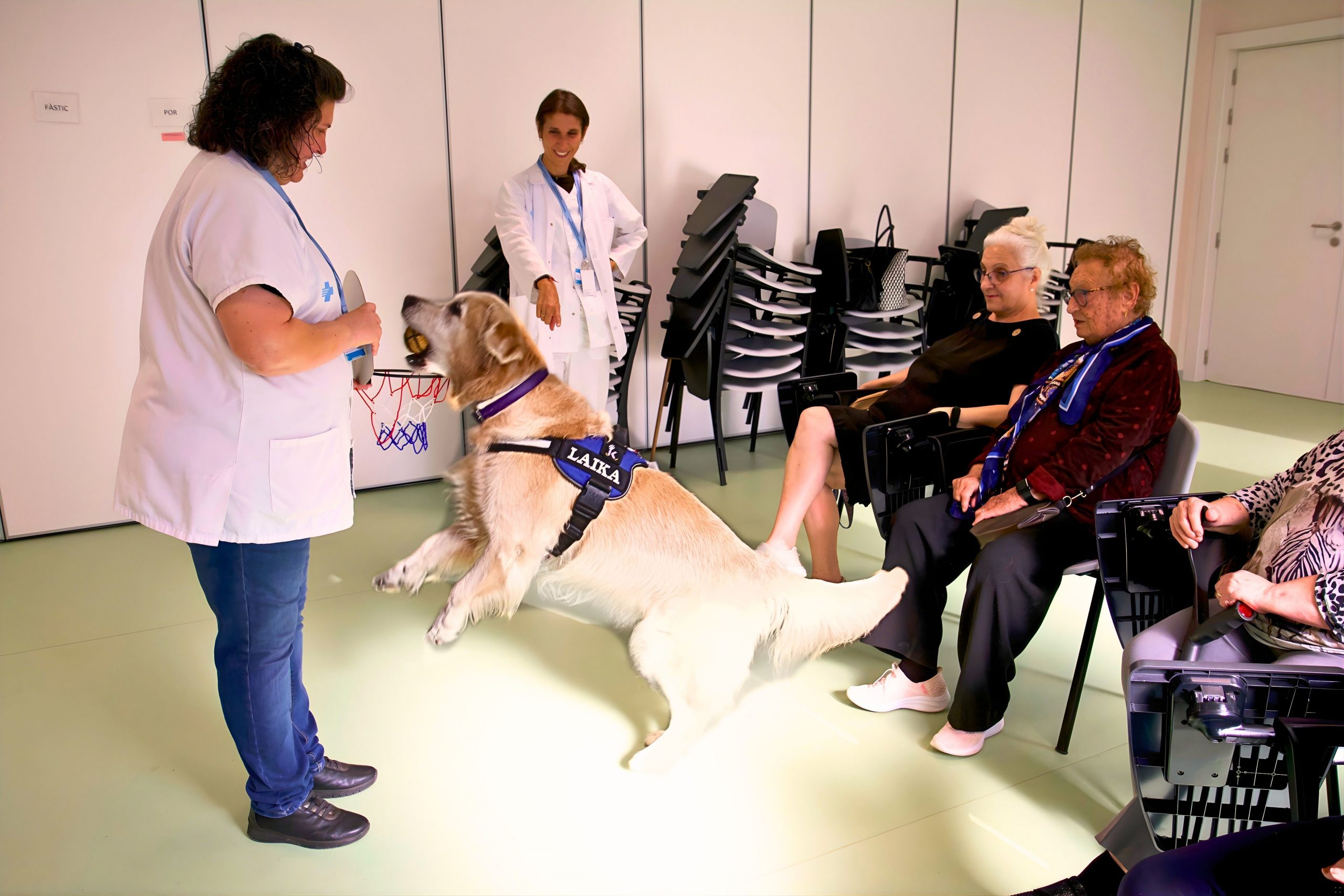 Les sessions les dirigeixen professionals dels àmbits de la psicologia, la fisioteràpia, el treball social, la infermeria i la higiene dental, adaptant els continguts a les necessitats de cada grup. “Una de les activitats que hem fet és el cistell d’emocions: el gos porta un cistell amb targetes que diuen ‘content’, ‘amenaçat’, ‘tranquil’… i a partir d’aquí les relacionem amb emocions com la por, la ràbia o l’alegria. És una manera molt natural d’obrir converses i ajudar les persones a identificar com se senten”, afirma Rodrigo.