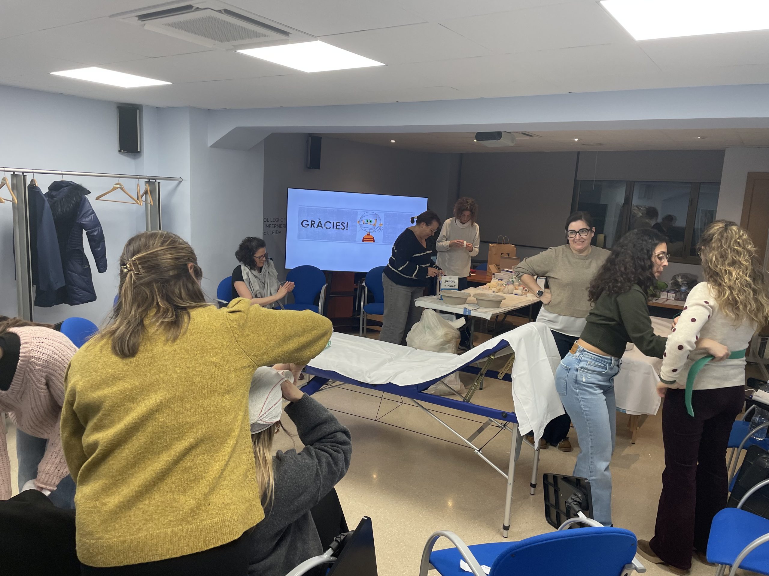 Els tallers, estructurats en dues sessions, han inclòs tècniques d’embenat i immobilització de les extremitats superiors (indactilia /fèrula digital, avantbraquial, braquial, vuit de guarisme/ gillchrist i zancolli) i inferiors (imbrincat, funcional de turmell o les fèrules suropèdica, inguinomaleolar, cruropedica o inguinopédica).