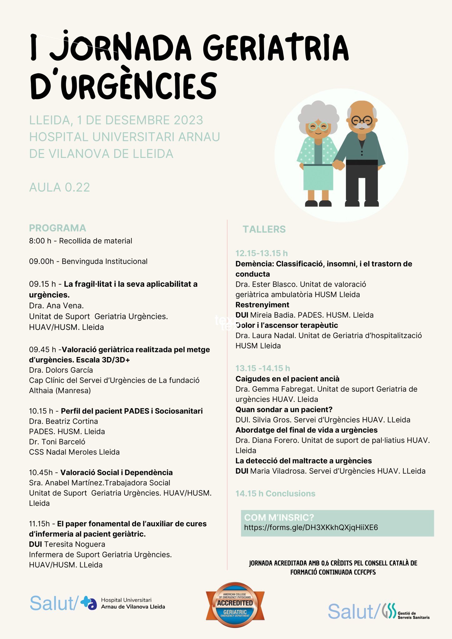 La jornada està acreditada amb 0,6 crèdits pel Consell Català de Formació Continuada CCFCPFS i està organitzada per l’Hospital Universitari Arnau de Vilanova de Lleida i Gestió de Serveis Sanitaris.