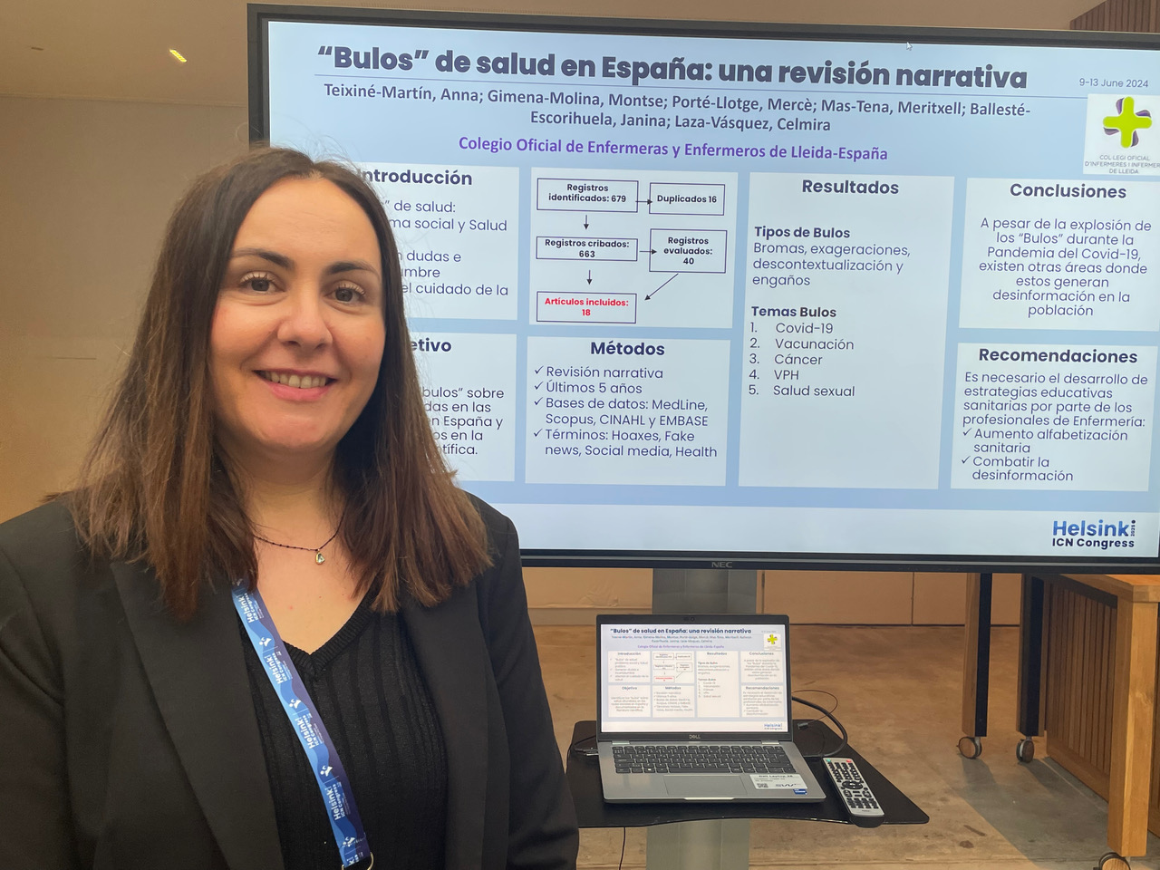 La difusió de notícies falses de salut a les xarxes socials genera desinformació, molts dubtes i afecta la cura de la salut en diferents àrees. Aquesta és una de les conclusions de l’estudi “Notícies falses de salut (‘bulos’) a Espanya: una revisió narrativa” fet per Anna Teixiné Martín, Montserrat Gimena Molina, Mercè Porté Llotge, Meritxell Mas Tena, Janina Ballesté Escorihuela i Celmira Laza Vázquez; infermeres lleidatanes que participen en el Congrés Internacional d’Infermeria de Hèlsinki. La recerca demostra que estem davant d’un problema social i de salut pública que genera gran incertesa, ja que ha estat en els darrers cinc anys quan s’ha produït un esclat incontrolable de “fake news” en els diferents mitjans d’informació, especialment en les xarxes socials.