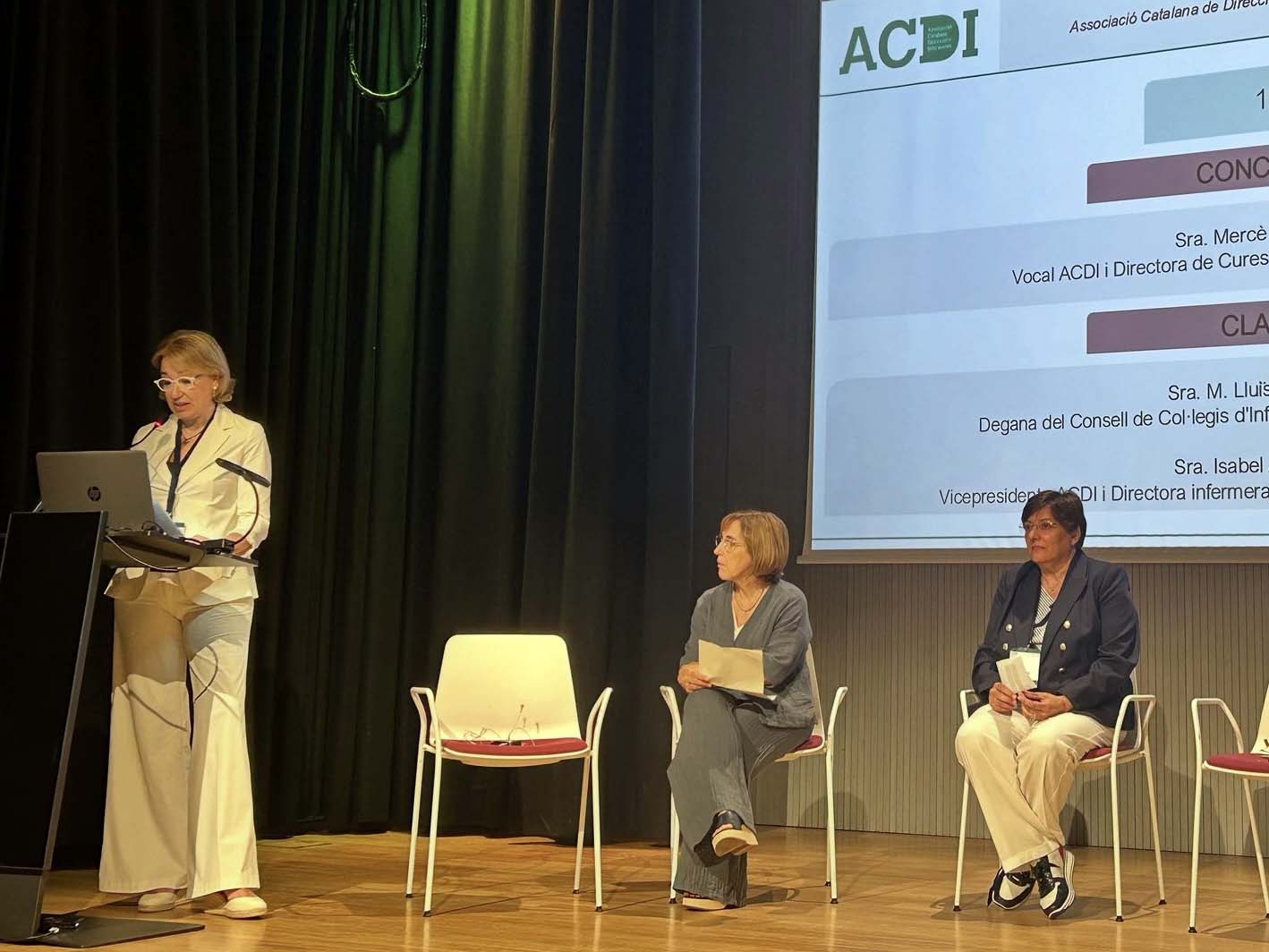 La trobada arrencava a primera hora del matí amb una presentació en què la Dra. Adela Zabalegui Yarnoz –presidenta de l’ACDI i subdirectora d’Infermeria a l’Hospital Clínic de Barcelona– i Arantxa Gutiérrez del Toro –vocal de l’ACDI i responsable assistencial del Procés d’Hospitalització i Procés Urgent a la Clínica Corachan de Barcelona– exposaven l’objectiu de la jornada: “compartir i debatre estratègies de cura als professionals des de la gestió, per enfortir l’atracció i la retenció del talent infermer”.