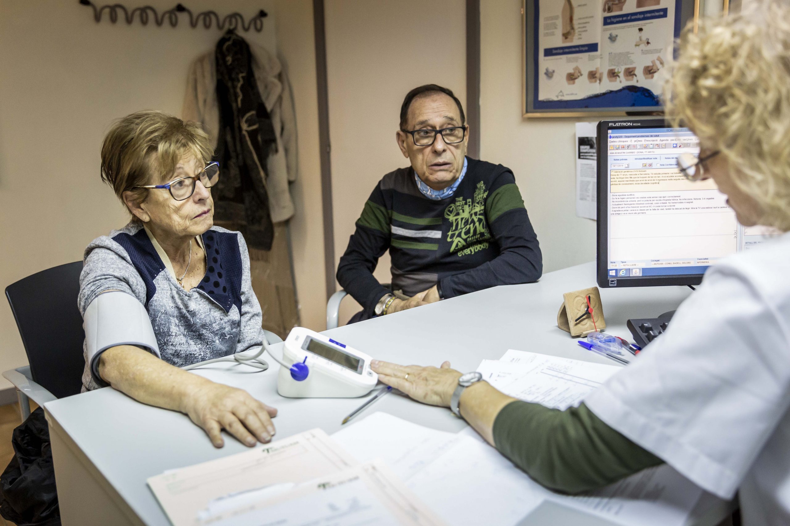 Foto Infermera pren la tensió arterial a una persona atesa a la Unitat de Valoració Geriàtrica Integral (UVGI) © Ariadna Creus i Àngel García (Banc d’Imatges Infermeres)