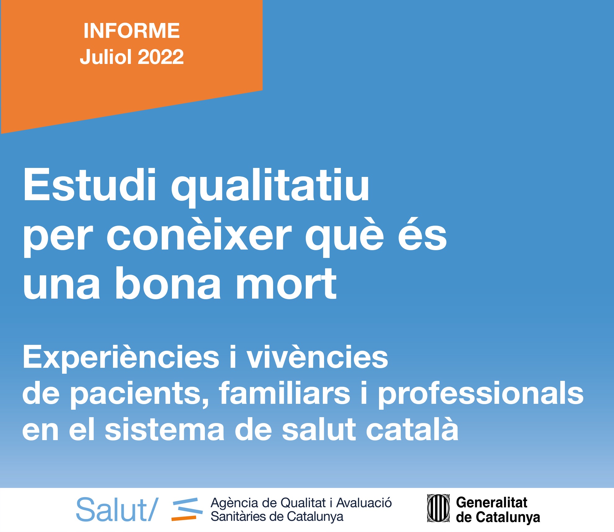 L’Agència de Qualitat i Avaluació Sanitàries (AQuAS) del Departament de Salut ha fet públics els resultats del projecte “Estudi qualitatiu per conèixer què és una ‘bona mort’. Experiències i vivències de pacients, familiars i professionals en el sistema de salut català”, que aporta una reflexió sobre la necessitat d’una major sensibilització i parlar més obertament sobre un procés tan natural de la vida com és la mort. S’ha portat a terme en estreta col·laboració amb societats científiques, entitats i associacions de pacients referents a Catalunya.